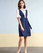 - 秋季长袖衣服搭配 欧根纱连衣裙修身款