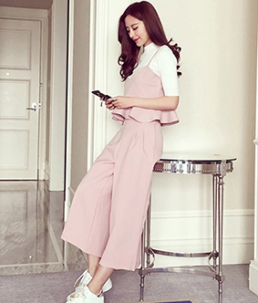 - 粉色阔腿裤配什么颜色衣服 粉色背带阔腿裤搭